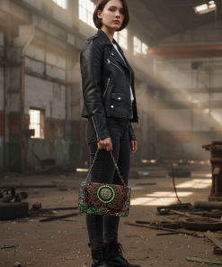 Featuring intricate circular Ankara patterns enhanced with shimmering crystal embellishments, this bag blends vibrant African artistry with modern luxury. The structured silhouette, paired with a sleek chain strap, makes it perfect for both everyday elegance and special occasions.